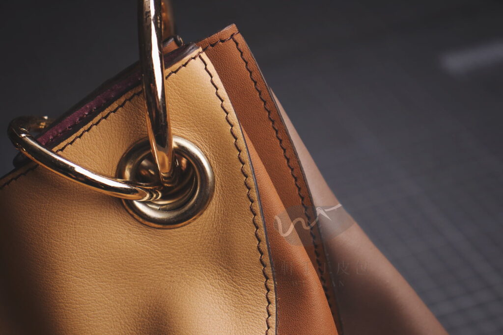 我們熟知的 LV 包包,皮革縫線處就是用植鞣革配黃線的對比,形成強烈的反差。