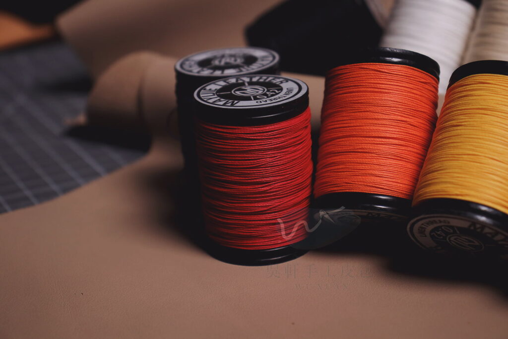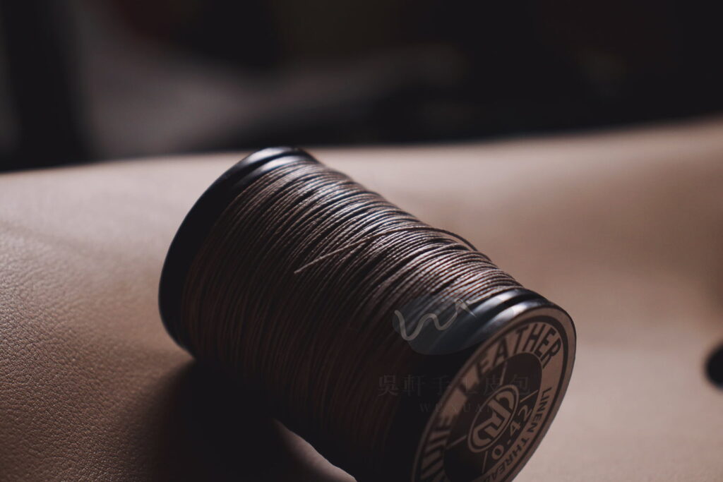 在皮革手縫中,麻線可以算是最精緻、高端的選擇。在愛馬仕的手縫皮件裡,都是用法薩琳麻線進行製作。 ( 法國的麻線品牌 )