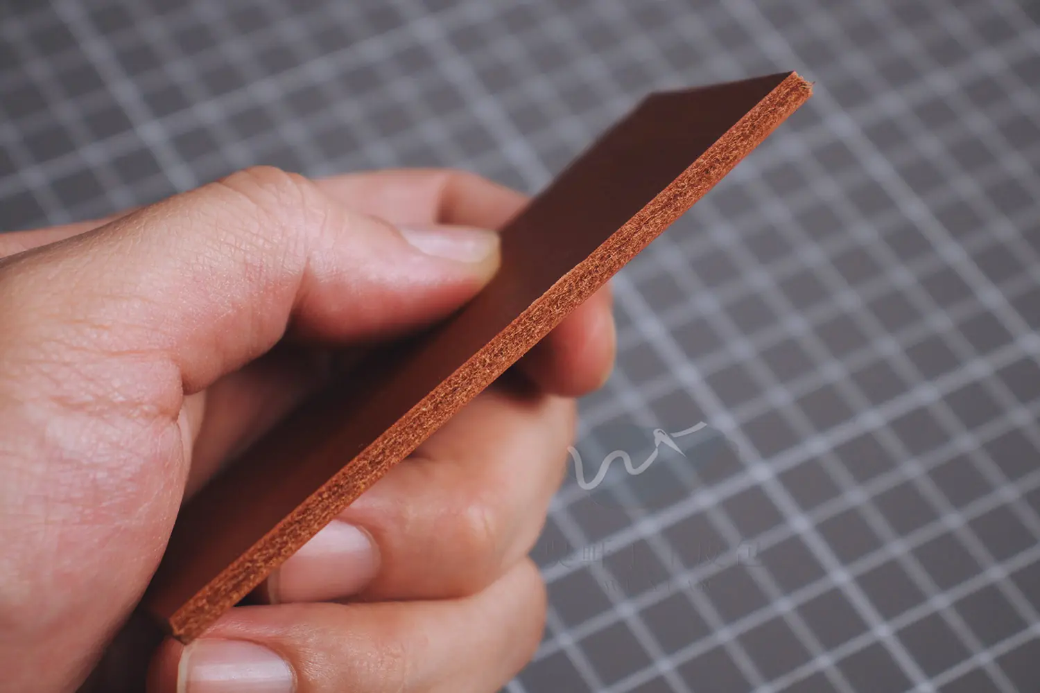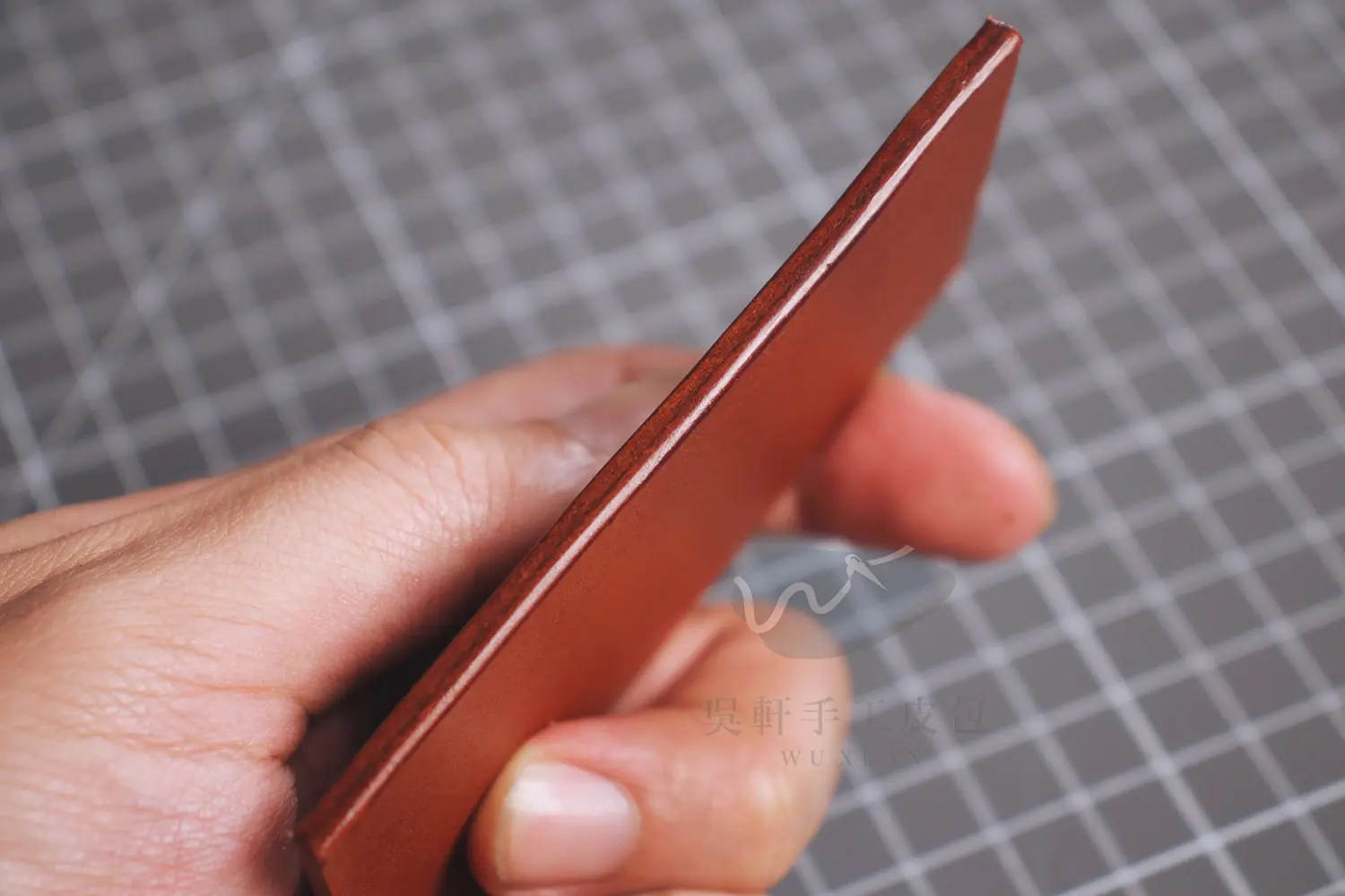 在皮邊工整的情況下,初次打磨我通常選擇 #600 ~ #800 的砂紙;隨著皮革不斷打磨光滑,再逐步增加砂紙細緻度至 #2000 。
