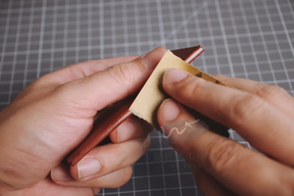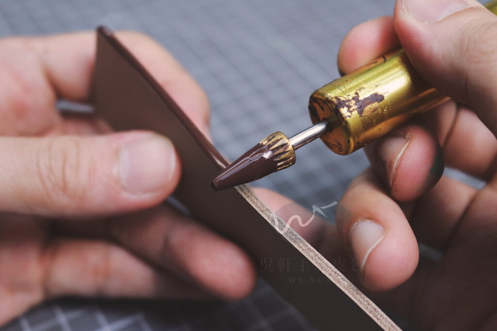 直接對皮革邊緣進行處理,將皮革本身向內打磨、塑形、拋光,也可以染色或上蠟。
