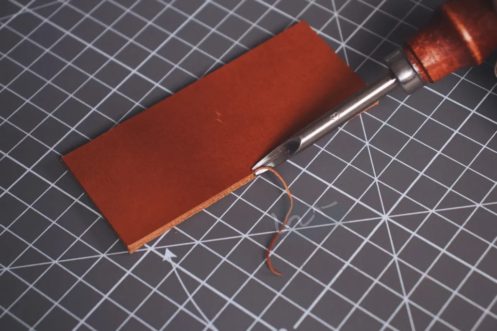 這兩者的最大差異,前者是把邊油覆蓋上皮革後操作、後者則是直接做在皮革上,你可以理解為「一個是向外做加法、一個是向內做減法」。