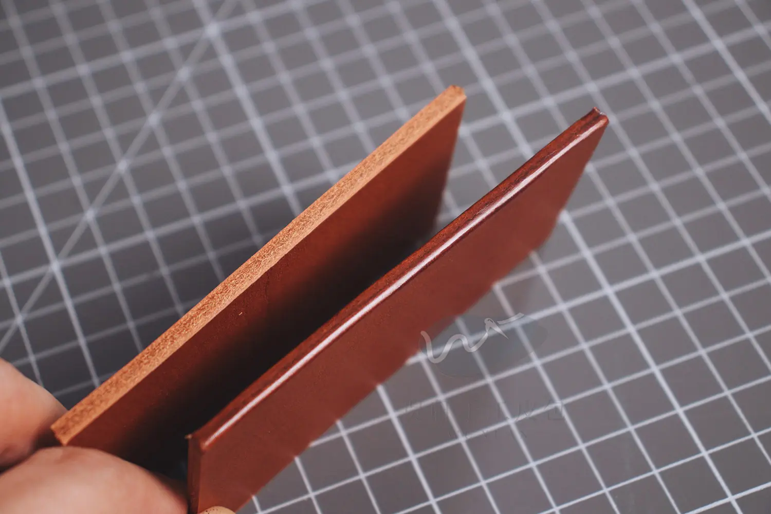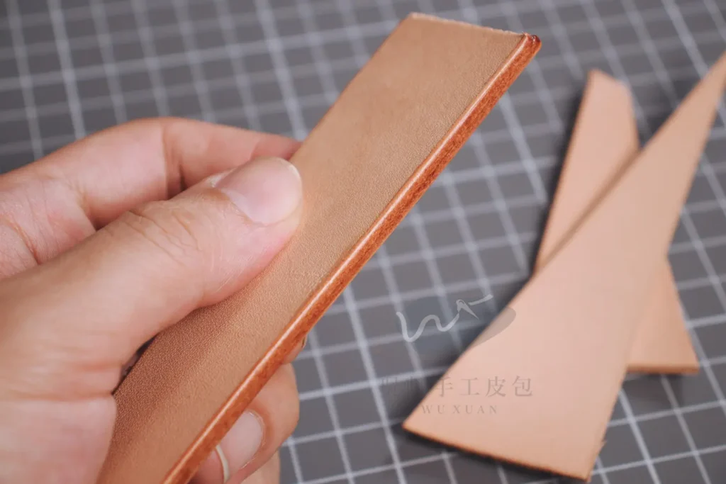植鞣革本身的物理性質,除了相對較硬以外,打磨生熱時也會產生膠合、拋光的自然效果,所以打磨封邊這件事才能成立;